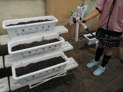 子どもたちは,球根を植えた後に,「一生懸命水やりをして,きれいな花を咲かせたいです」と言っていました。人権の花は,栽培委員会が中心となって,日々の水やりなどのお世話をします。「思いやり」の心を持って育て,きれいな花が咲く日が楽しみです。