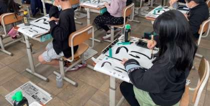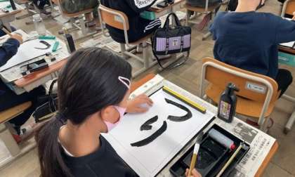 「漢字と違ってひらがなの文字は,丸みがある。」「曲がりやはらいの筆づかいに注意して...」と今まで学習してきたことと比べたり,活かしたりしながら,書くことができていました。