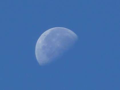 おはようございます。今朝もひんやりとした空気で,さわやかな秋晴れです。空には半月となる,「下弦の月」が浮かんでいます。昼前には西山に沈んでいきます。