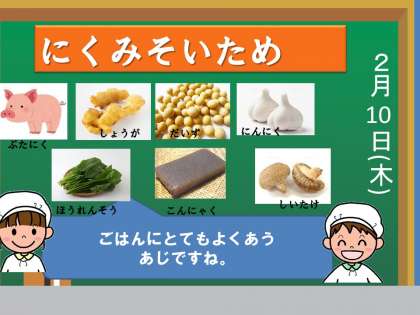 今日の給食は,「麦ごはん・牛乳・肉みそ炒め・はるさめスープ」でした。