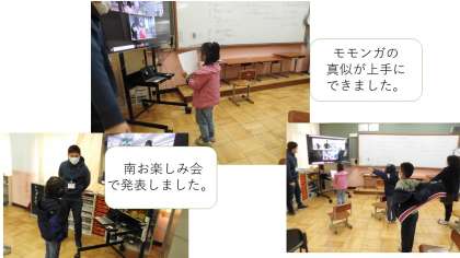 南お楽しみ会がありました。最初は南支部11校の友だちとリモート交流しました。