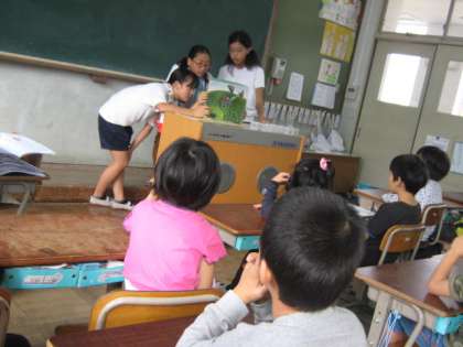 図書委員さんが,朝読書の時間に紙芝居の読み聞かせに来てくれました。