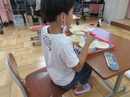 4組の1年生も,とても元気よく給食もしっかり食べることができます。