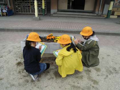 虫めがねを使って,形などをくわしく調べました。ワークシートには,見たことがくわしくうかかれてありました。