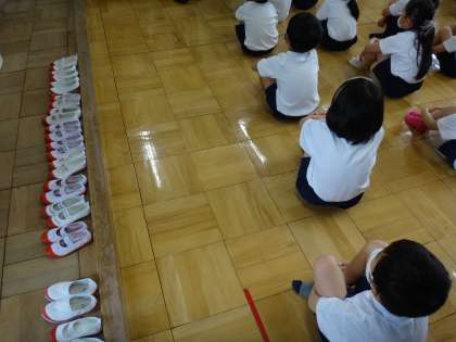 しっかりお話を聞いていた1年生。上靴もきれいに並んでいます。