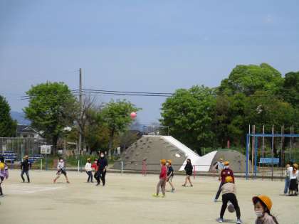 中間休みには,1年生も外に出てボールあそびをしています。