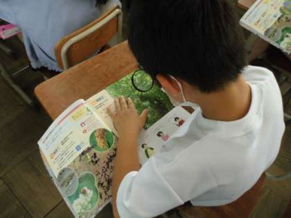 4年生の理科では,季節と生物の学習をしています。今日は虫眼鏡を使って桜の木の写真から,春の様子を見つけました。虫眼鏡もだんだん上手に使えるようになっています。