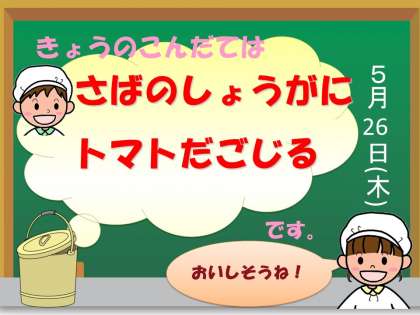 今日の給食は,「麦ごはん・牛乳・さばの生姜煮・トマトだご汁」でした。