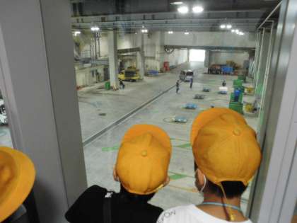 まず見学をしたのは市内から回収されたごみが集まるプラットフォームです。パッカー車やトラックに乗せられたごみが次々運ばれる様子が見られました。