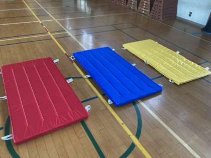各ご家庭やPTAの委員の方々にお世話になり,新しい体育用のマットをいただきました。しっかりとしたつくりで滑り止めもついていて,さらに安全にマット運動や跳び箱運動ができそうです。ご協力いただきありがとうございました。子どもたちにも後日紹介したいと思います。