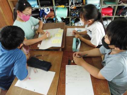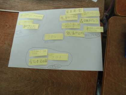 4年生の総合的な学習は地球の環境問題について学んでいます。この日は子どもたちが今知っている環境問題について,グループで話し合いを行いました。「これとこれは関係しているね。同じグループかな。」,「温暖化ってどういうこと?」など,活発な話合い活動を行うことができました。
