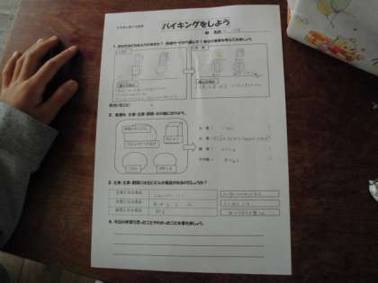 振り返りには,「主食・主菜・副菜には,それぞれ体への働きがあることを知りました。」「バランスよく食べることの大切さを知りました。」「山の家でも,食事を見分けて食べたいです。」などと書いていました。