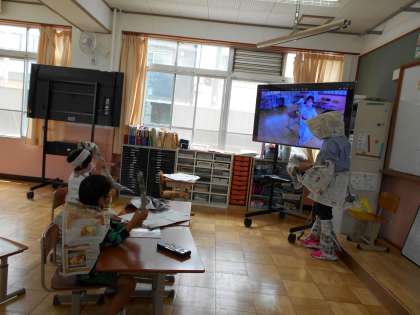 今日は新聞紙を使った造形遊びの学習を行いました。新聞紙の形や材質を生かして,自分の好きな服や道具を再現できるよう工夫していました。