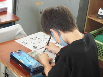 5時間目の書写の学習では,カタカナの形に気を付けて,正しい姿勢で書く学習を行いました。