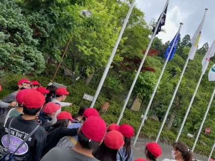 偶然,子どもたちは,野生の鹿に出会うことができました。