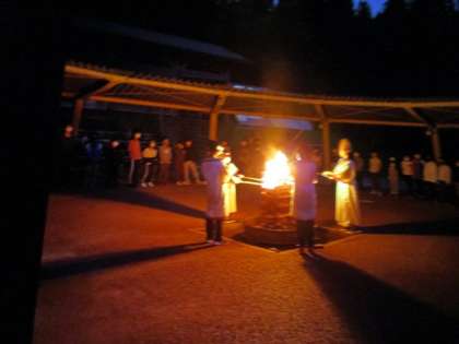 今回は,3つの火です。1つめは,挑戦の火。2つめは,協力の火。3つめは,希望の火です。風が吹き,一瞬,灯が消えそうになりましたが,ちゃんと3つの火を分けていただき,大きな炎となりました。