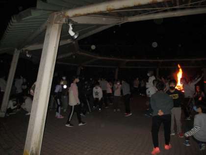 時間とともに,炎の勢いもすこしずつ弱くなっていっています。そろそろ終わりに近づいてきました。今日のキャンプファイヤーが思い出に残ってくれますように…。