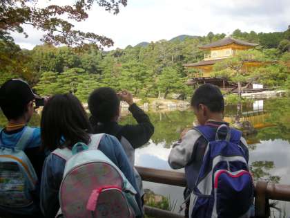 4組の探検シリーズの幕開けです。第1弾は,金閣です。金色に輝く文字通りの金閣が見えた時,子どもたちの感激の声!学校へ帰って,早速自分たちが撮った写真の鑑賞会をしました。5人ともみんななかなかの腕前です。