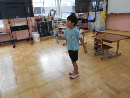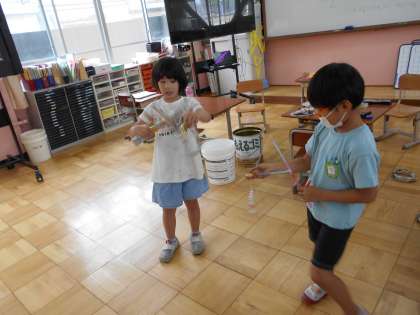 本日の4組低学年の図画工作「動くおもちゃ」作りは「新聞を使ったけん玉づくり」でした。 昨日の学習で、輪の作り方が上手になり、重さや大きさ等に工夫する姿が見られました。その輪を再利用しました。