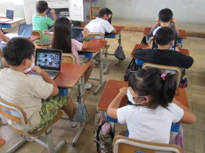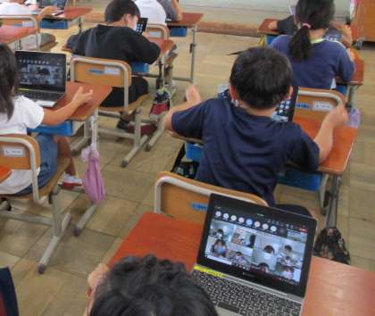 「会議の参加の仕方を覚えてるよ。」「マイクの使い方は、あっているかな。」と、昨年度に学習したことを思い出しながら、担任が名前を呼んだ時に、子どもたちは元気よく返事をすることができていました。