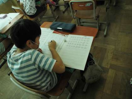 ローマ字表を見ながら、ローマ字で読んだり書いたりしました。