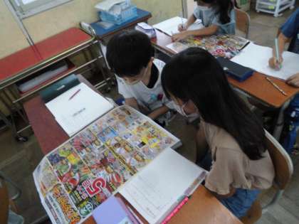 スーパーは、なぜたくさんのお客さんにきてもらえるのか、ひみつを予想しました。