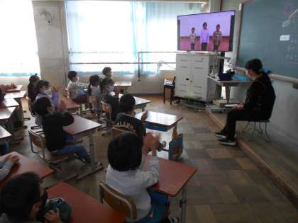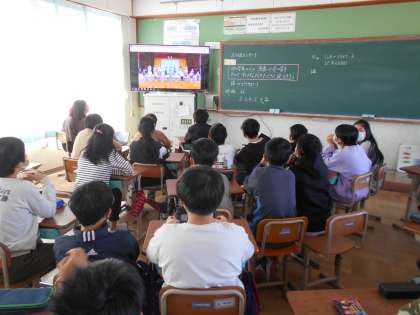 10月19日1・2校時に『唐橋スマイルコンサート』の動画視聴・鑑賞会を全校で一斉に行いました。4組および1年生から6年生までが、音楽の学習で積み重ねてきた成果を「合唱」や「器楽(リコーダー)演奏」で披露しました。