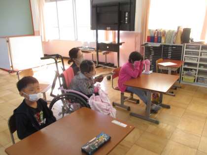 本日は1、2時間目に「スマイルコンサート」の視聴をしました。まず自分たちの演奏を聴き、練習を思い出しました。画面に合わせてリズムにのり楽しく視聴しました。その後学年順に、視聴しました。それぞれに明るく元気よく、楽しい演奏や歌唱を聴きました。また音楽の知識の勉強にもなりました。外国の音楽や、有名なゲーム音楽など、感動しながら視聴しました。とても充実した楽しい時間でした。