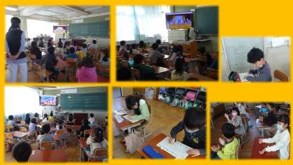 今日は、子ども達が楽しみにしていた、スマイルコンサートの動画視聴日でした。他の学年の歌唱や演奏を聴き、「リコーダーの音が重なっていてきれいだな。」「6年生、とってもきれいな歌声で、感動したよ!」「はずんで歌っていて、楽しい感じが伝わってきました。」「みんなの心が一つになっていて、すてきだなと思いました。」と、様々なことを感じながら聴き入る姿が印象的でした。