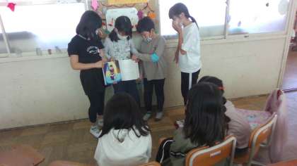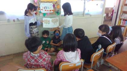 1年生を前に、はじめは緊張した面持ちでしたが、3年生らしく堂々と読み聞かせをすることができました。