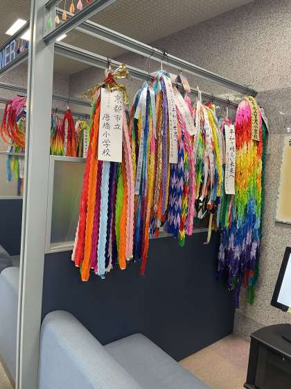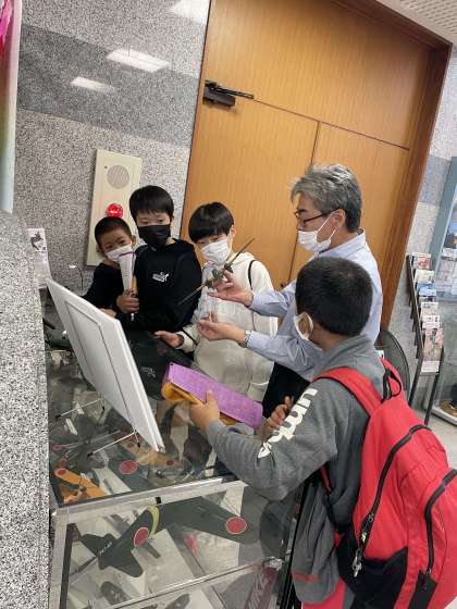 平和資料館を見学しました。資料館職員の方に模型や資料を使って説明してもらいました。折り鶴も展示してもらいました。