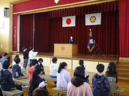 本日、開校記念式典を迎えられますこと、520名の児童と教職員の大きな喜びであります。