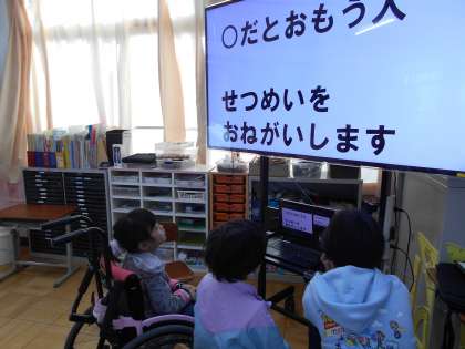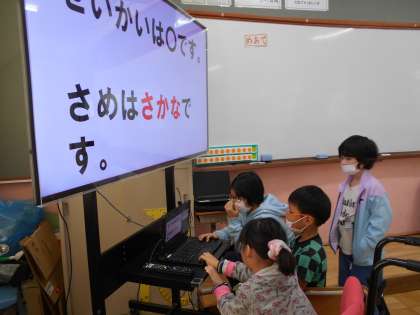 本日の「なかよしタイム」は1年2組でした。1年生を中心に低学年が今日も頑張り、クイズの出題を読み上げました。