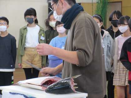 5年生の総合的な学習「魚っとおどろく魚博士になろう」で、ゲストティーチャーにさかな博士をお迎えし、魚についてたくさん教えていただきました。