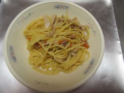 今日の「きのこのスパゲティ」には、旬のきのこである「まいたけ」「しいたけ」「エリンギ」を使いました。きのこの香りと食感を味わえました。