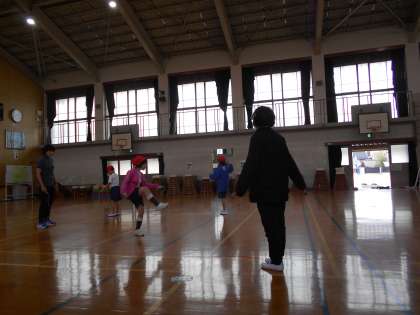 今日は、体育館での学習でした。「バナナくんたいそう」で体をほぐし「縄跳び」で汗をかきました。