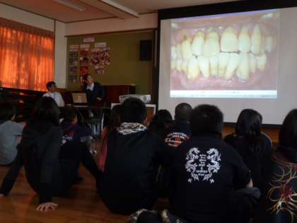 すでにご紹介したように,昨日は歯磨き巡回指導がありました。冒頭,磨き方による歯へのダメージを説明されるのに,スライドを見ました。その写真で子どもたちは一気に真剣な表情へと変わりました。かくいう私も,医者さんに通っていますが,残念ながら抜歯する方向になっています。今更ながら,歯をいたわり,加齢に負けない歯をつくろうと思いました。