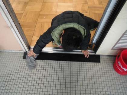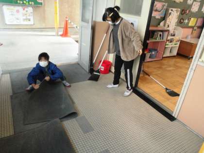 今学期ももうすぐ冬休み。1年の締めくくりに向かって、4組高学年は掃除をとても頑張っています。今日のような雨の後は、全校の人の通る通路になっているので特に力をいれています。