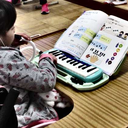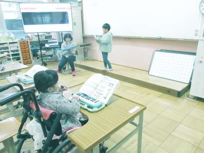 金曜の5時間目は、音楽でした。高学年は、鍵盤ハーモニカで「愉快な船長」や「オーラリー」を演奏しました。次に、「楽しいマーチ」は大きくきれいな声で歌えるよう頑張っています。低学年は、「どんぐりさんのおうち」「なかよし」で鍵盤ハーモニカの指使いを練習しました。「ミッキーマウスマーチ」でリズム取りをした後に、歌唱を楽しく学びました。