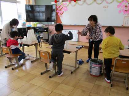 紙コップを使って、バランス感覚の学習をしました。