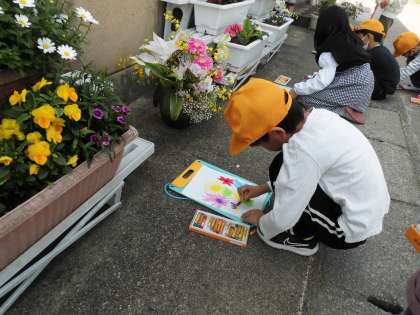 図画工作の学習でお花のスケッチをしました。