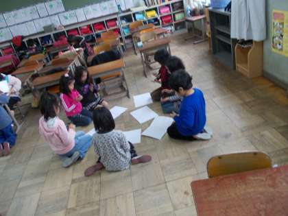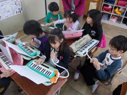 同じパートの子ども同士集まって練習したり,教え合ったり・・・。