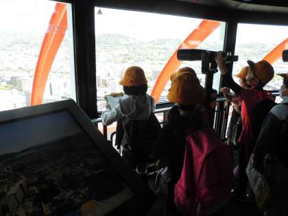 京都タワーの展望台からは、京都市を一望して、東西南北にはどんな建物があるのかを調べました。