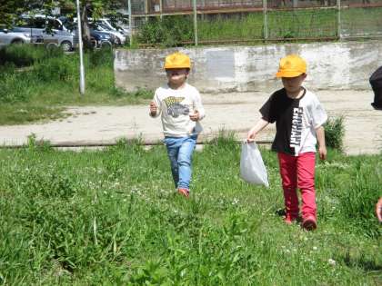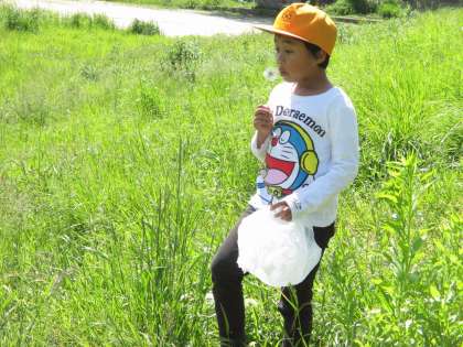 シロツメクサを摘んだり、たんぽぽの綿毛を飛ばしたり、さわやかな天候の中、たっぷり春に触れました。