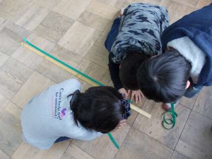 30センチメートルの竹尺ではうまく測れなかった人もたくさんいましたが,100センチメートルの竹尺では「はやくて かんたん せいかく」に測ることができました。