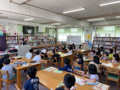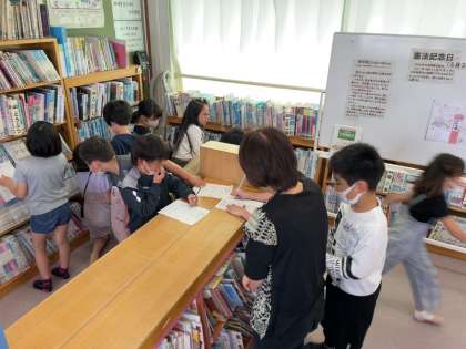 国語の授業で、「図書館探偵団」を行いました。図書館の本の並びの秘密や本の分類の仕方について学習しました。