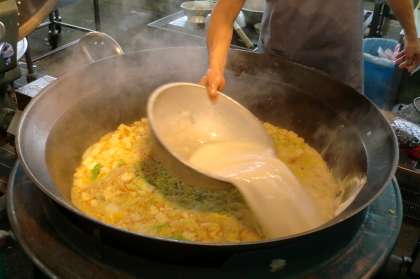 かにととうふのくず煮は,チキンスープでにんじんと白菜,とうふを煮た後,かに身を加えて火を通し,片栗粉でとろみをつけました。味を引き締めるため,最後にしょうがのしぼり汁を加えました。