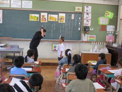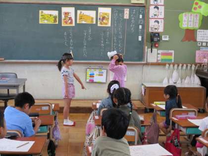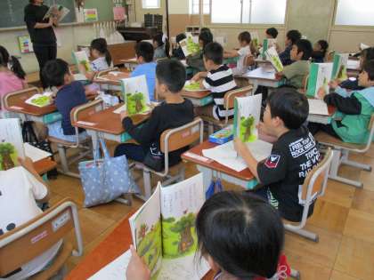 1年生のそれぞれの教室から、元気のよいお話を読む声が聞こえてきます。