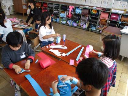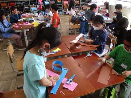 図画工作の学習は「わっかで へんしん」の学習を進めています。