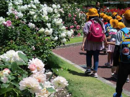 最後に、洋風庭園で様々な種類のバラ園を見学した後、バスに乗って帰りました。